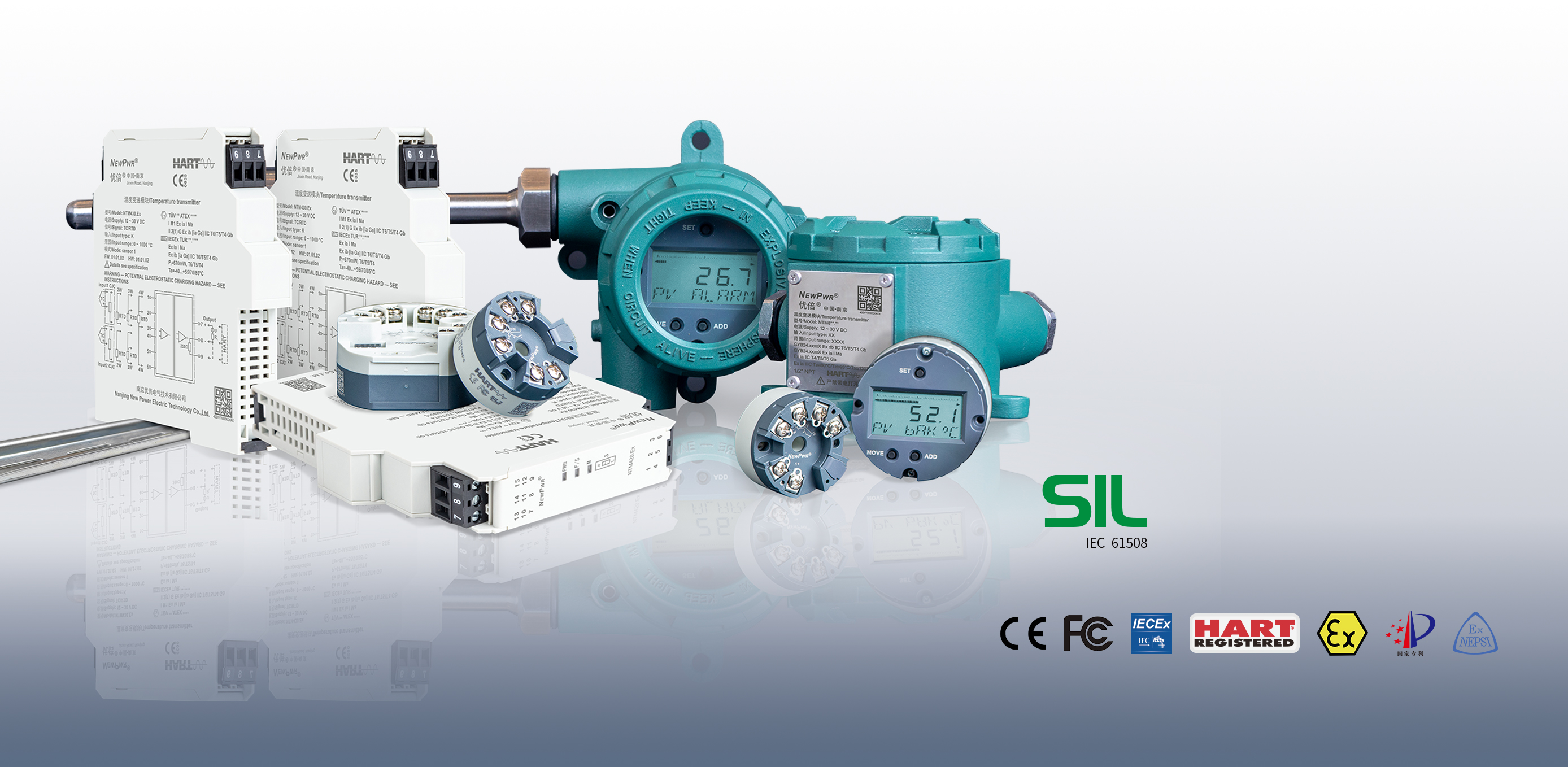 NTM8系列是DINA型尺寸的溫度變送模塊,輸入雙支熱電偶或熱電阻信號,變送輸出4~20mA電流信號,支持HART通訊。現場可選擇LCD液晶顯示模塊擴展。支持按鍵組態和DD組態。獲得防爆認證、HART認證、SIL認證、CE認證等;